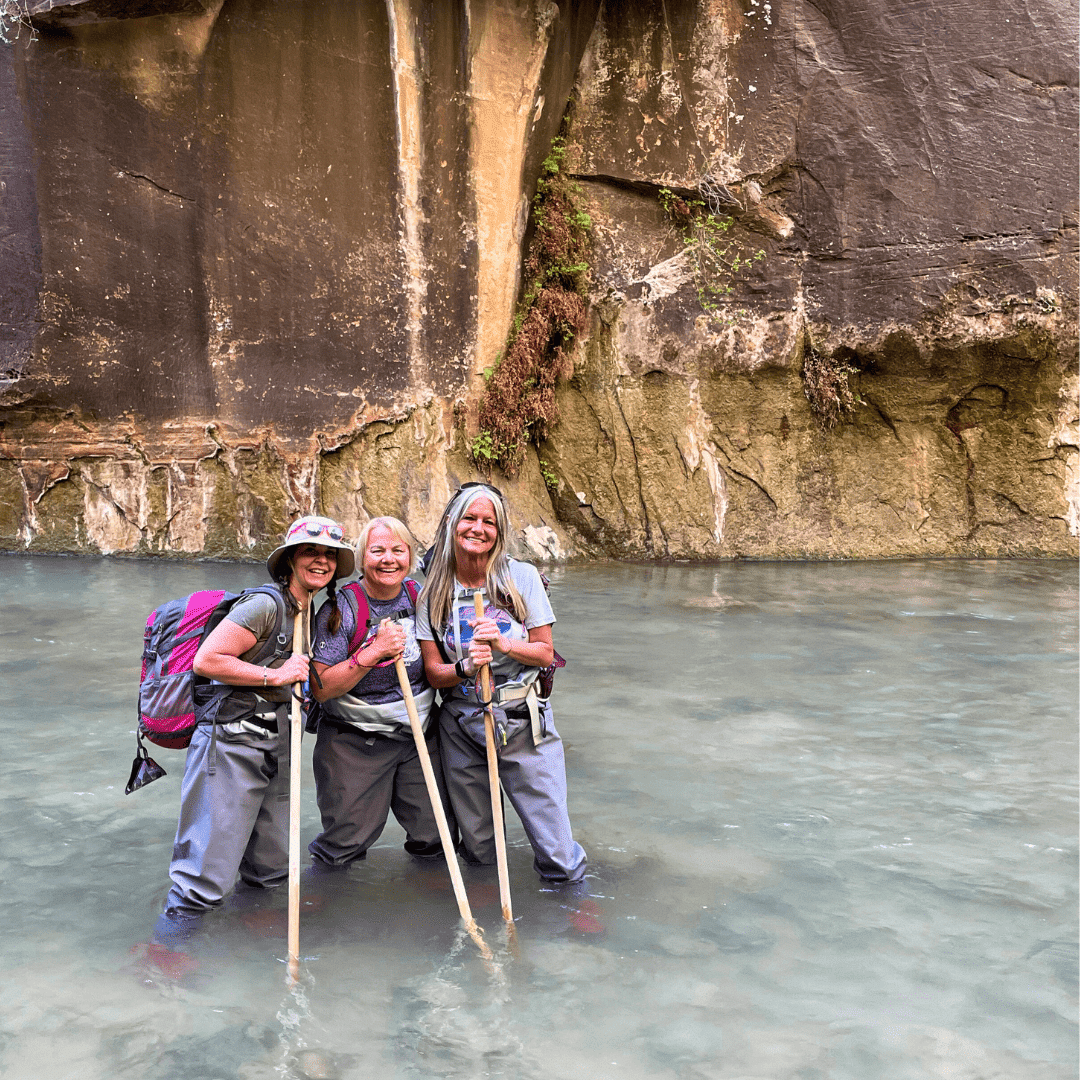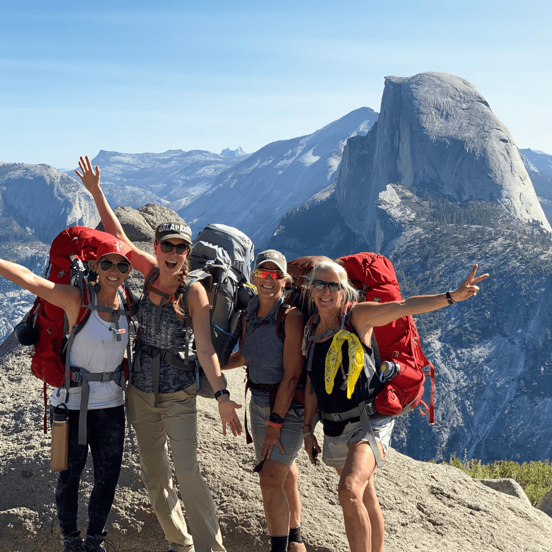 Badass women ages 30-60+ bust their booties up mountains, down waterfalls, and across glaciers. There is no upper age limit on our adventures. We welcome you no matter your age!